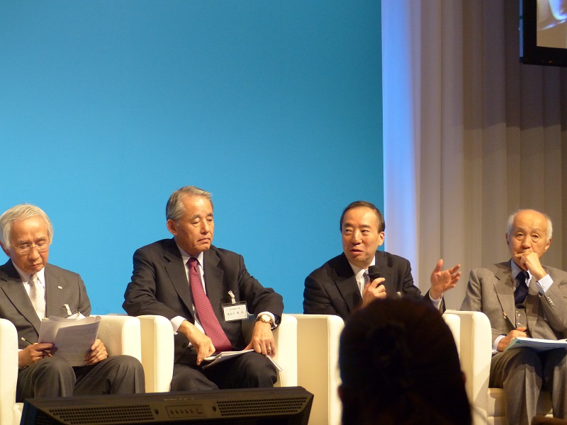 | 17:20~18:30 | 第2部:総論~日本アカデメイア、われわれのメッセージ 1. 冒頭挨拶(牛尾治朗共同塾頭) 2. 報告「余剰幻想を超えて」(佐々木毅共同塾頭) 3. 討論・メッセージ「いま、日本が取り組むべきこと」 4. 締め括り挨拶・アピール(茂木友三郎共同塾頭) |